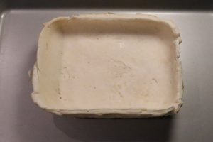 - Put the loaf pan upside down in a baking tray. Roll-out the pastry so that it will cover the loaf pan. You want the boat to be a bit thick and have sides that are a bit less than 2” tall. That will give you a sufficient side to tack the top layer of puff pastry to when we finish wrapping the tenderloin. Use a fork to poke small holes into the pastry. Refrigerate for about 30 minutes.