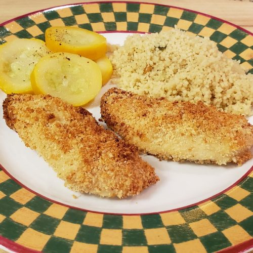 This is a recipe my wife taught me years ago, and it’s so simple to do. The secret is using mayonnaise right out of the fridge. I like to use chicken tenders, but I’ve also made this with chicken breast fillets and full chicken breasts. Using your homemade seasoned bread crumbs adds to the character of the finished product. You’ll find crispy baked chicken to be crispy on the outside and juicy on the inside.