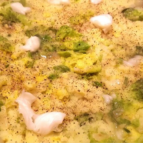 I was introduced to Bubble and Squeak by Clarissa Dickson Wright — one of the “Two Fat Ladies” well-known for their BBC2 television cooking program. It was in episode #3 of the first season, where Clarissa exclaimed that when making Bubble and Squeak, if you couldn’t use lard or beef drippings, “then go and cook something else…” The reason is that lard or rendered beef fat can get to a sufficiently high enough temperature to ensure this dish browns nicely and cooks through. My version of this is as true to Clarissa’s as I can do, where I use EPIC pork fat for the lard and Brussels sprouts rather than cabbage for the greens. If you’re on a diet, make this anyway and serve it as one of those “guilty pleasures” you can feel bad about well later after you’ve had a bite — or three!
